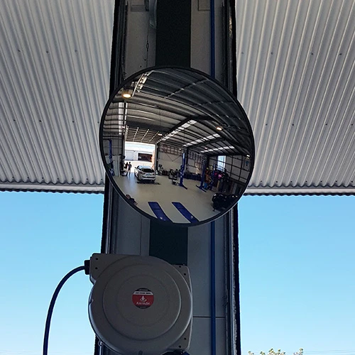 This 760mm Workshop Parking Mirror is designed to improve visibility and safety for vehicle movements in garages and assist with aligning vehicles for car lifts and hoists. This Indoor Adjustable Convex Mirror can be adjusted to any angle to allow an optimal line of sight to check brake lights and head lights. A very versatile convex mirror which can be positioned wherever a blind spot exists to allow safer entry and exit from a workshop as well as improving traffic flow.